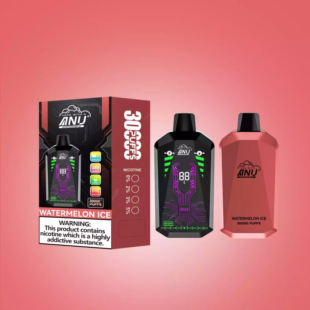 ANU Star 30000 Züge Einweg E-Zigarette Wassermelone Eis Geschmack 650mAh Akku Wiederaufladbar 22ml E-Liquid Niedriger Nikotingehalt 2025 Hot Vape für E-Zigaretten Liebhaber Hersteller Retail
